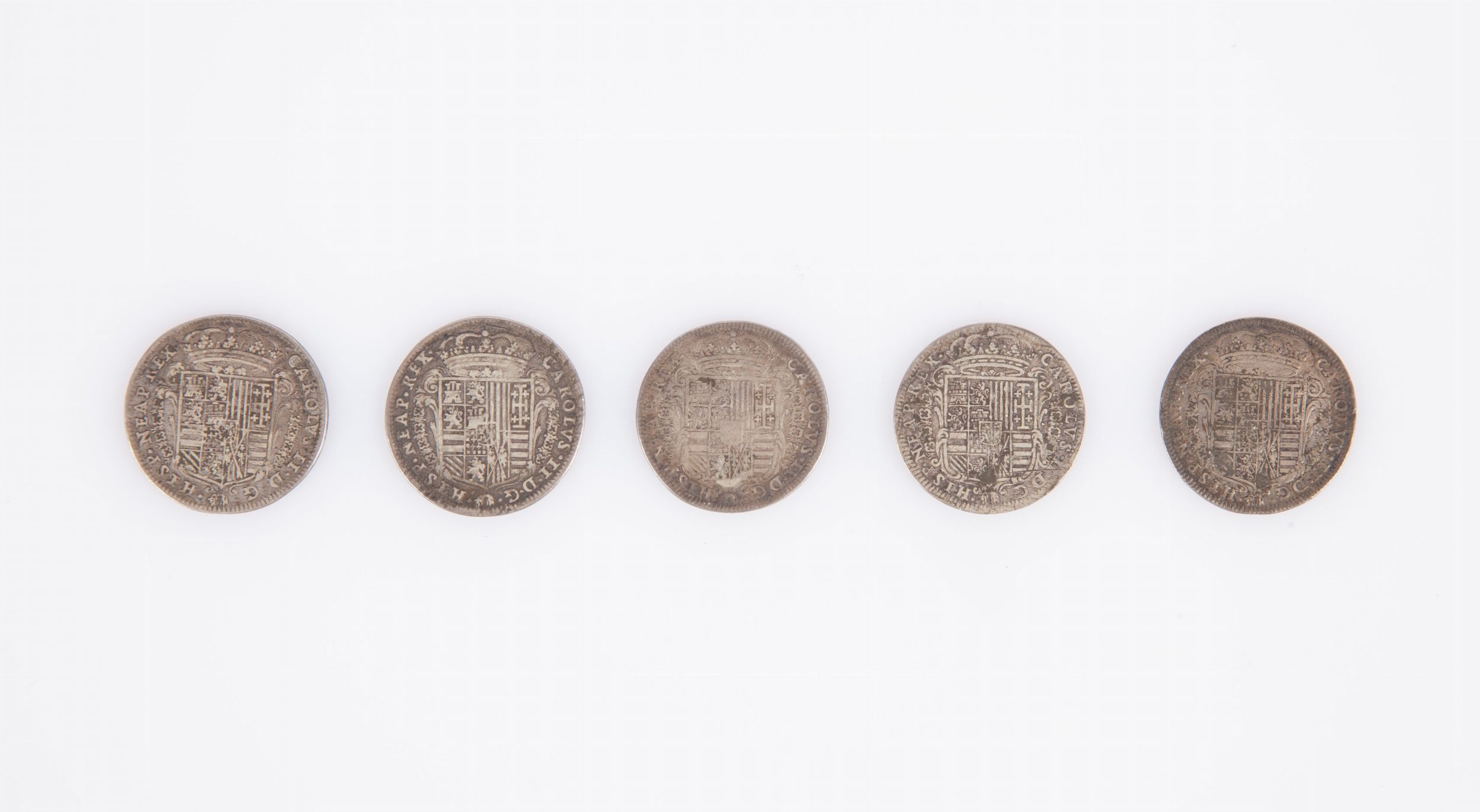 5 monete da 2 Carlini Carlo II - Napoli 1685 (2), 1687 (3)