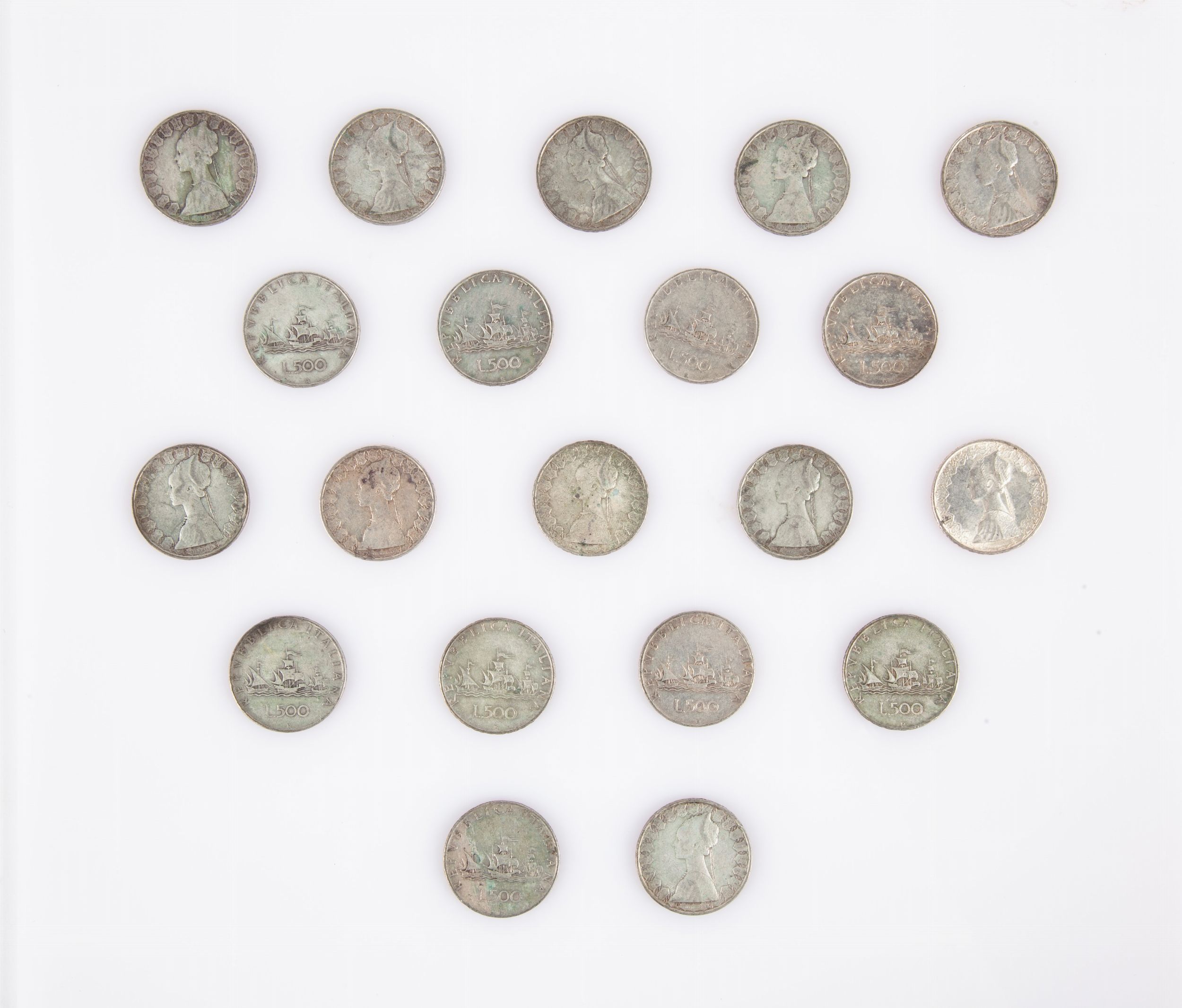 Lotto 20 monete da 500 lire Repubblica Italiana Caravelle
