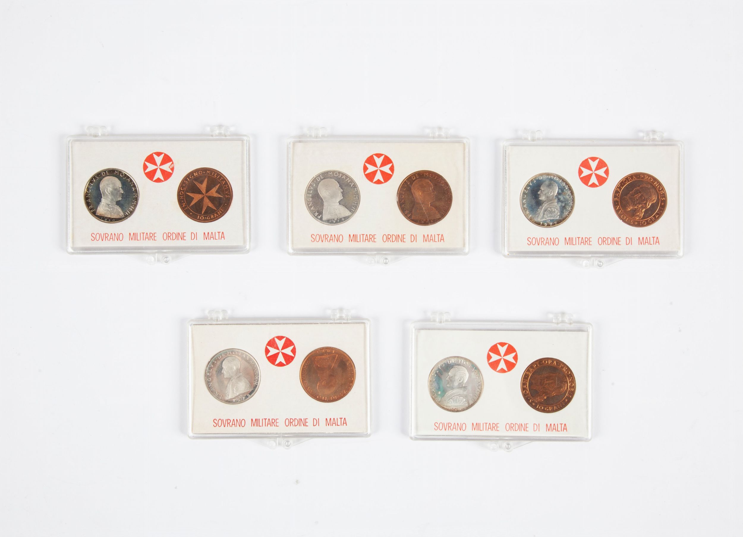 Lotto di 5 dittici 9 Taŕ e 10 Grani 1975, 1976, 1977, 1979 e 1980 Sovrano Militare [..]