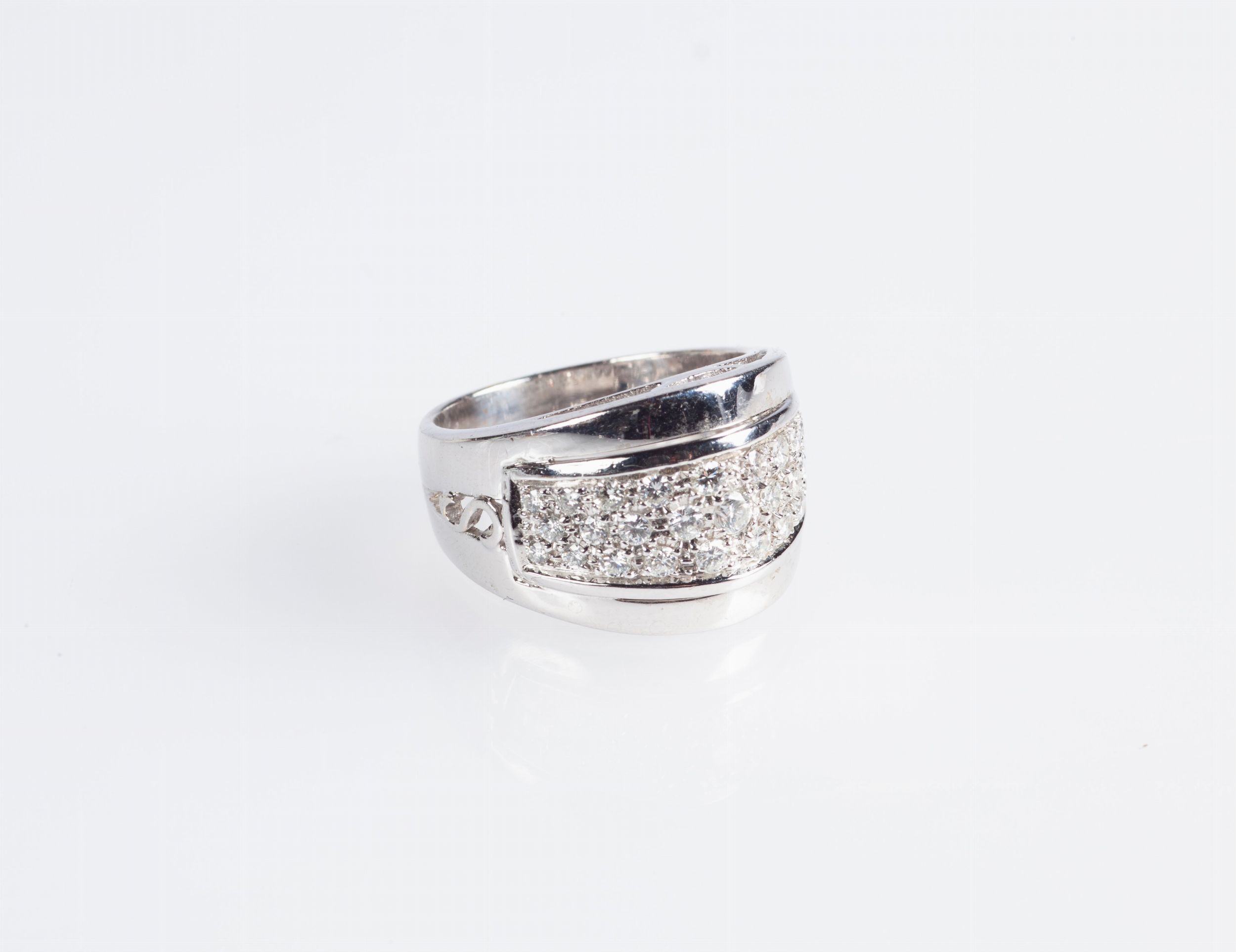Oro bianco 750/000. Diamanti in taglio rotondo brillante ct. 1 circa, G-H, vvs-vs. . Peso complessivo gr.9,90