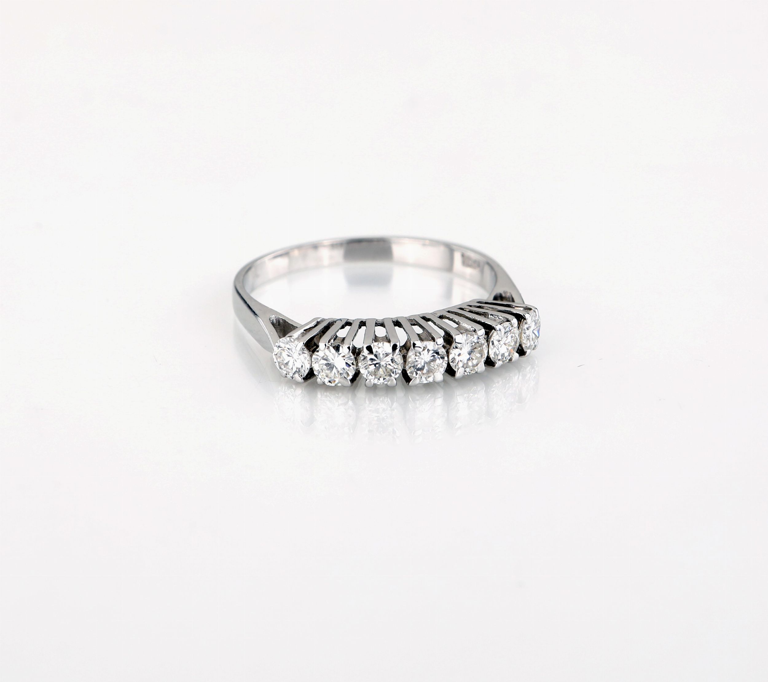 Oro bianco 750/000, diamanti in taglio rotondo brillante ct. 0,60 ca , H, VS1. Peso gr 2,70.