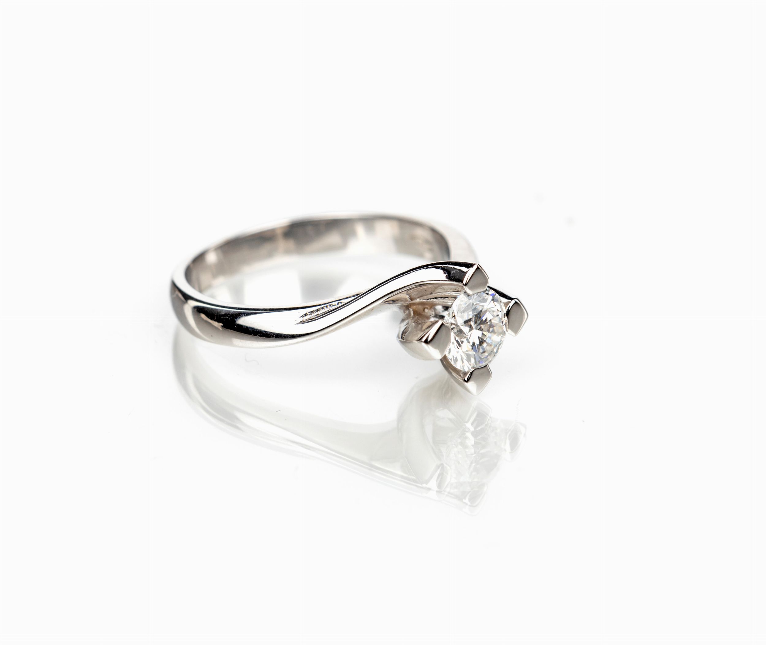 Oro bianco 750/000. Diamante taglio rotondo brillante ct. 0,50 ca. H VS1. Peso complessivo gr. 4.