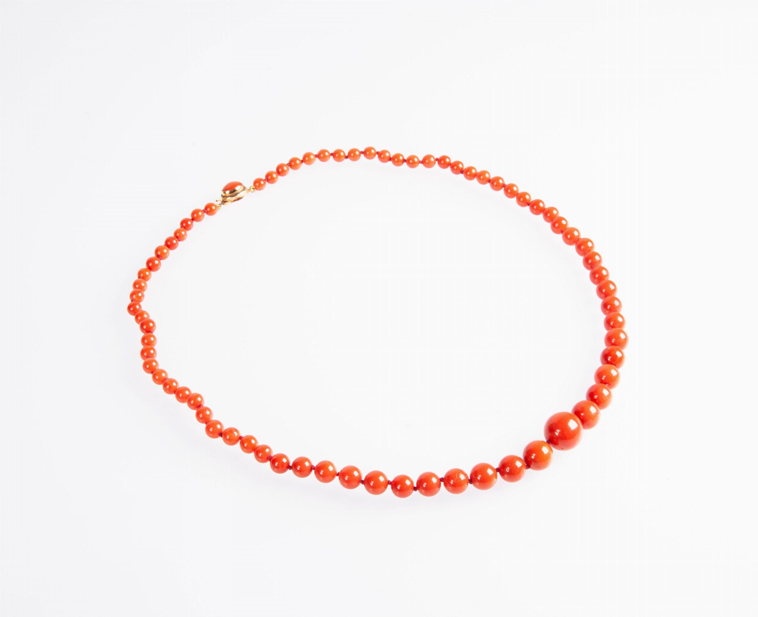 Collana di corallo rosso a sfere e oro
