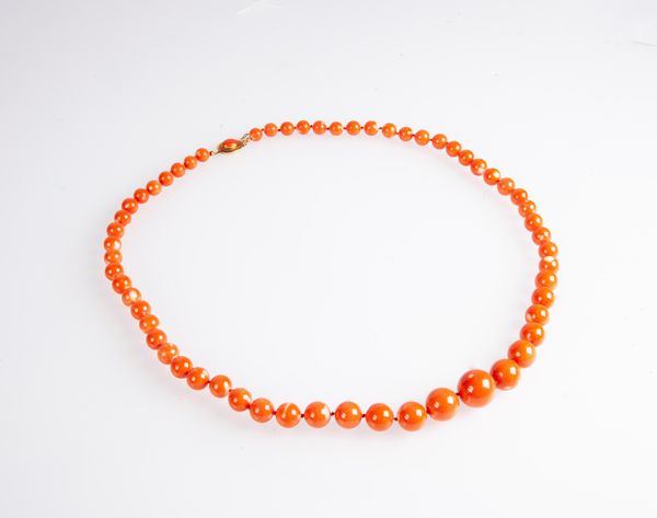 Oro giallo 750/000. Corallo in taglio sferico da mm. 8 a mm. 17. Peso complessivo gr. 103,50.