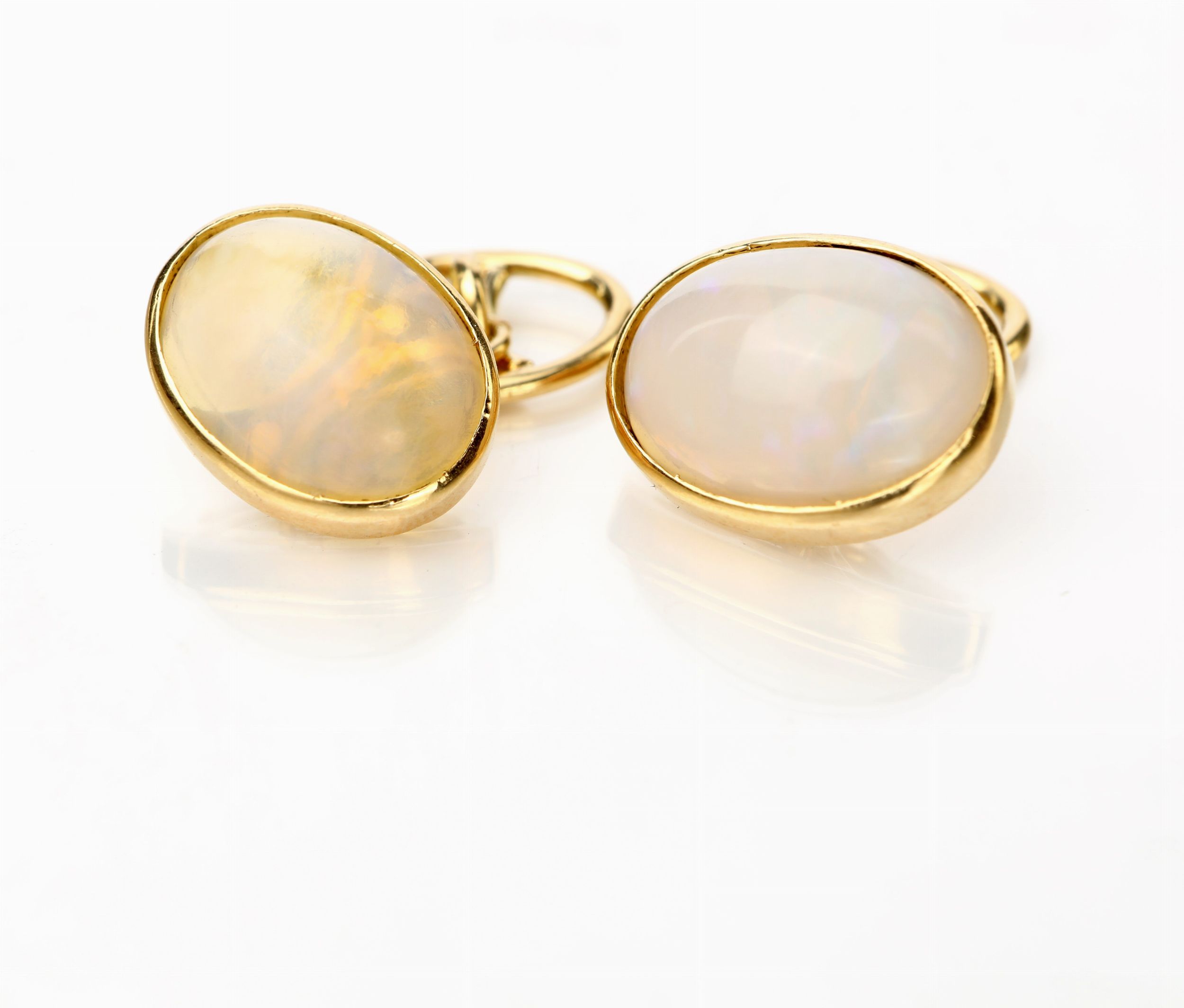 Oro giallo 750/000. Opale cabochon, peso complessivo 10,4 gr.
