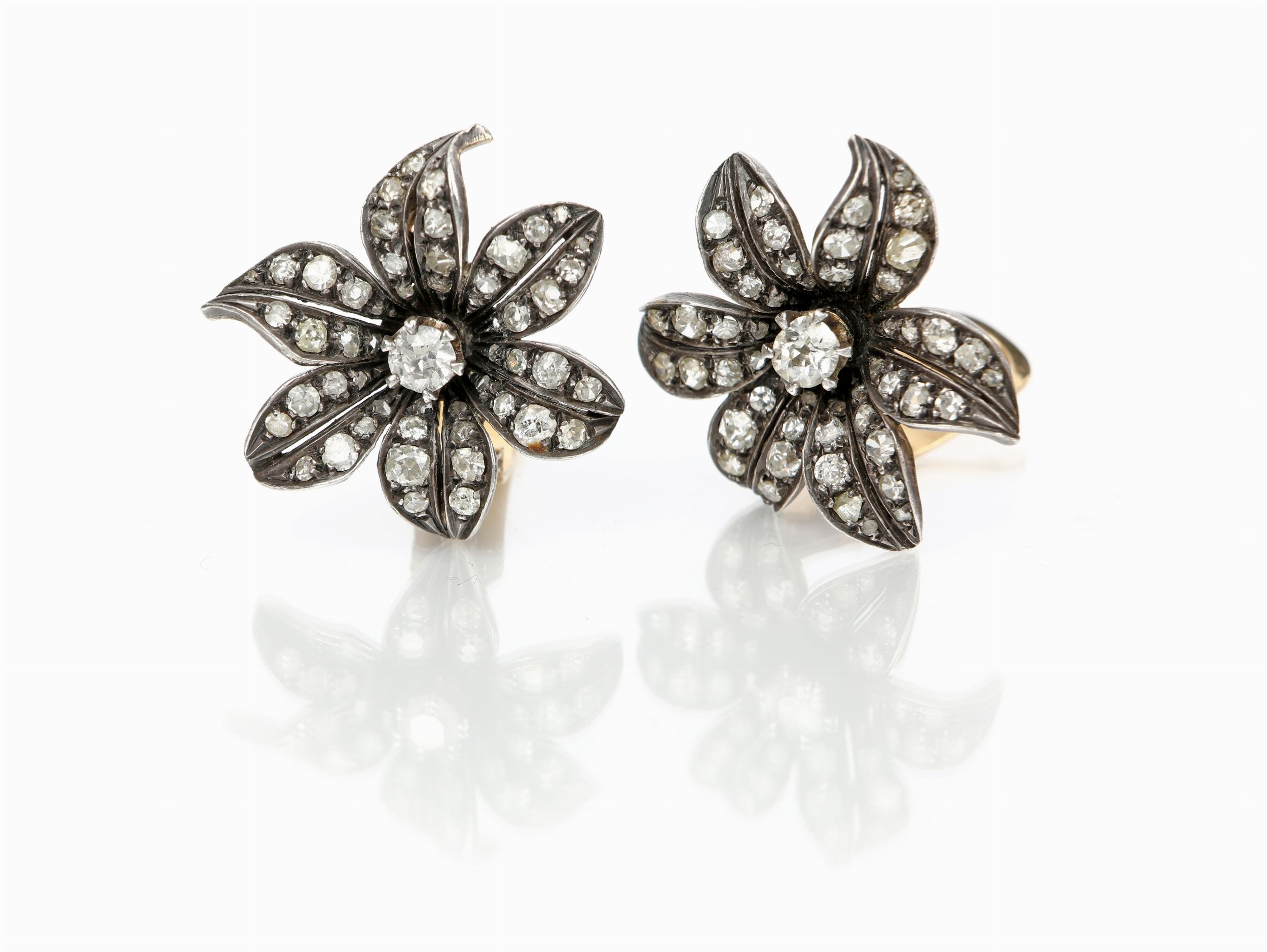 Oro a basso titolo, argento, diamanti in taglio old mine. Peso complessivo gr. 17,50