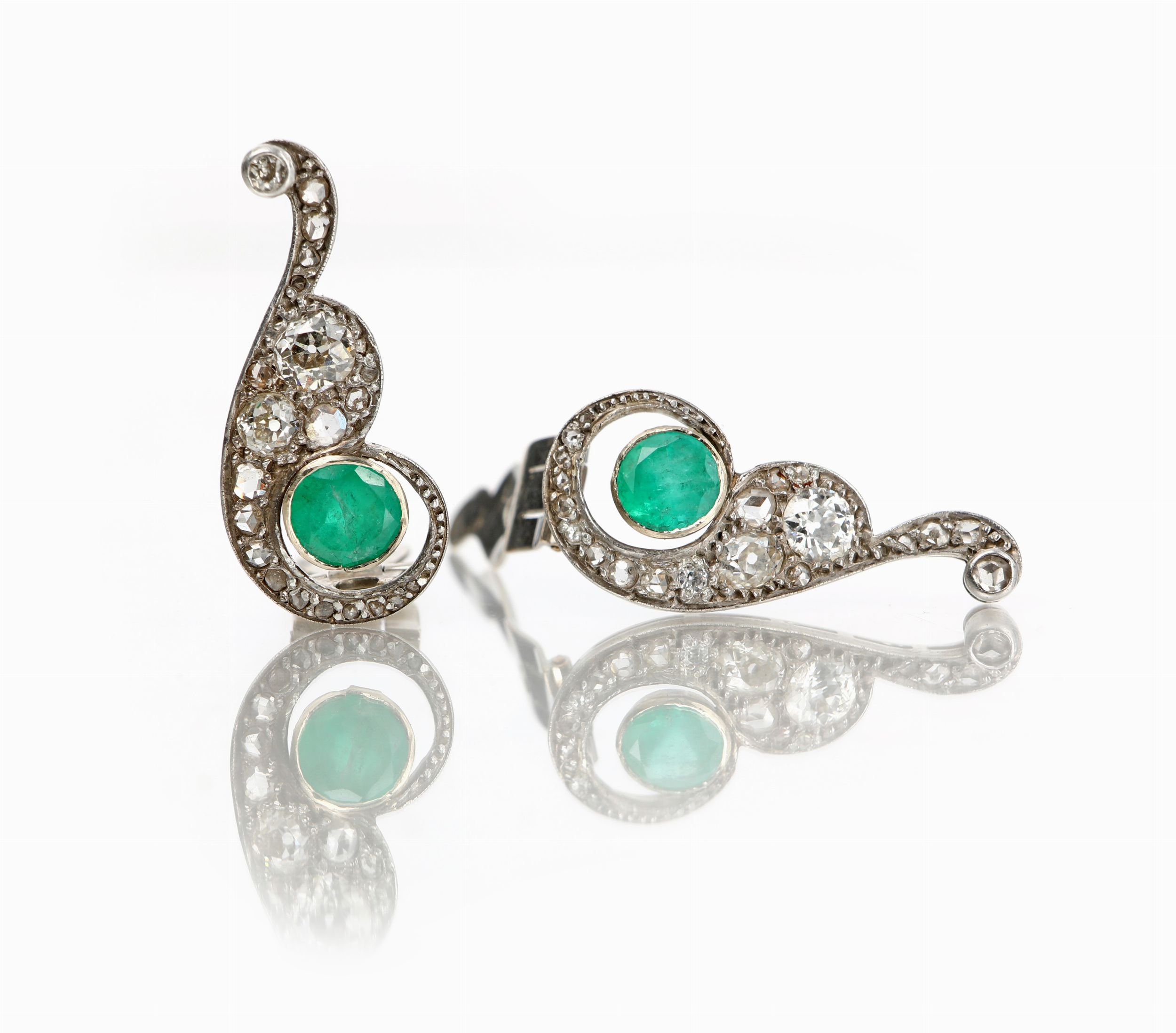 Coppia di orecchini in oro smeraldi e diamanti  - Asta Fine Jewels and Watches - Associazione Nazionale - Case d'Asta italiane