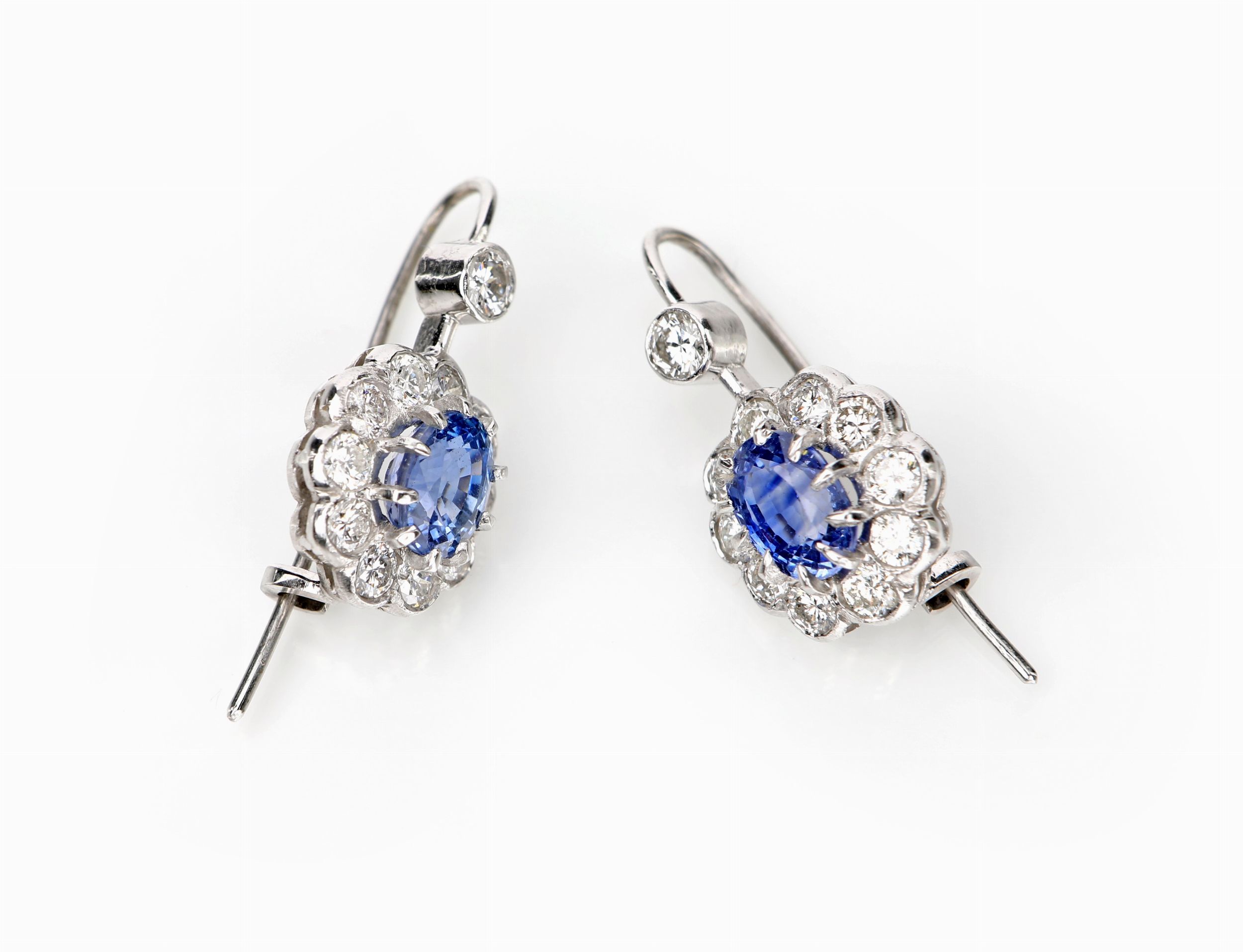 Coppia di orecchini in oro, zaffiri e brillanti