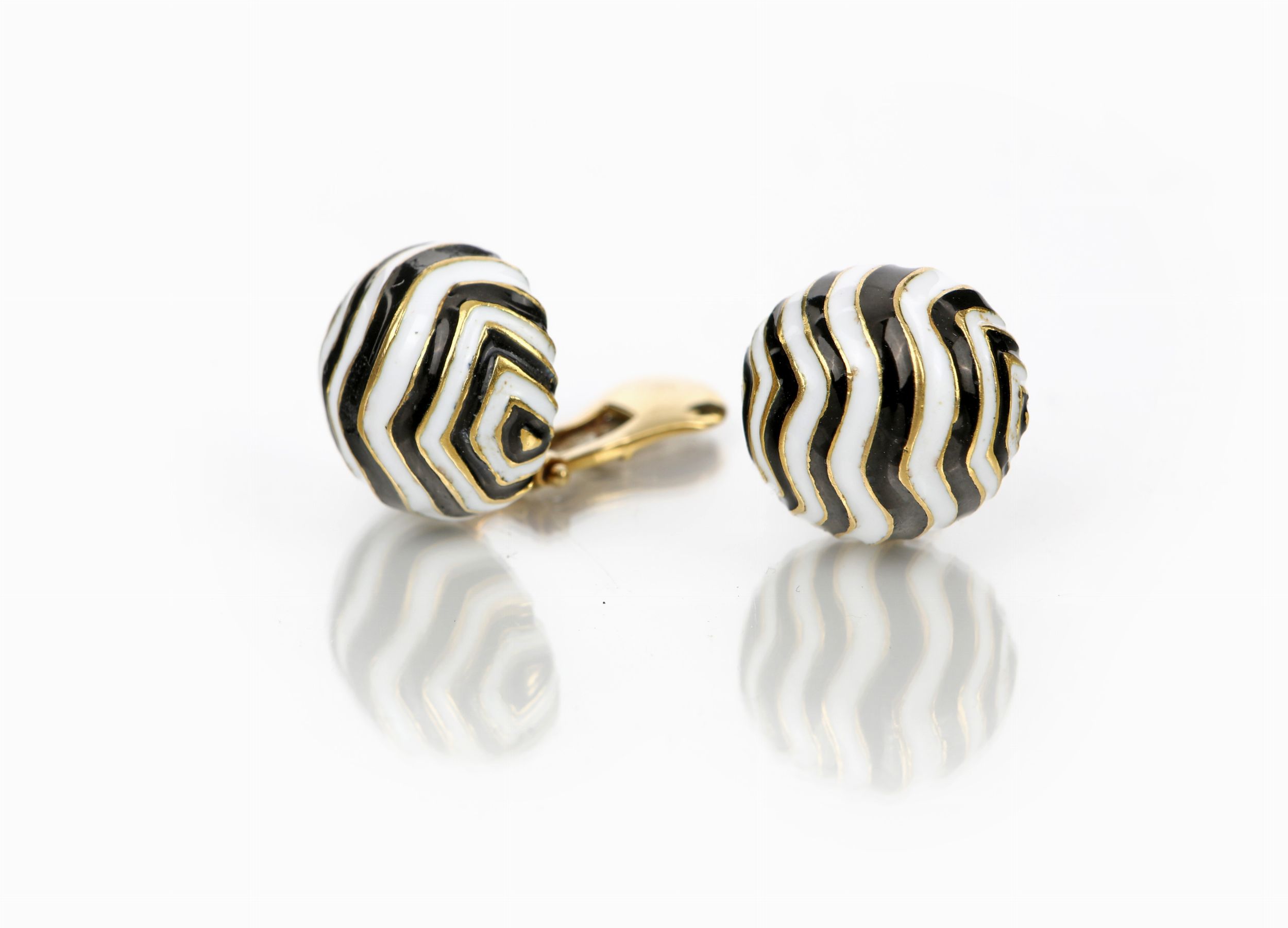 Oro giallo 750/000, smalti bicolore. Peso complessivo gr.16,3