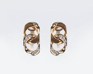 cm 2x1 Oro giallo e bianco 750/000. Diamanti in taglio rotondo. Peso complessivo gr.12,80.