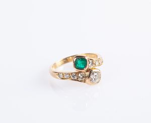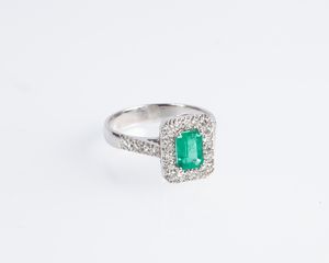 Misura 16 Oro bianco 750/000. Smeraldo naturale in taglio smeraldo ct 1,30 ca. , diamanti in taglio rotondo brillante [..]