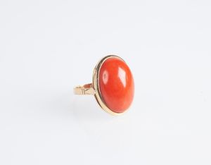 Misura 11 Oro giallo 750/0000., spola in corallo. Peso complessivo gr 6,1