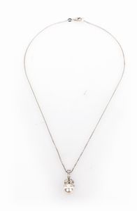 cm 40 Oro bianco 750/000. Diamanti taglio rotondo e navette ct. 1,30 Fg VVS VS, perla mm 10. Peso complessivo [..]