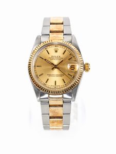 mm. 31. Orologio da polso con cassa e bracciale in oro e acciaio, quadrante champagne e vetro plexy. Movimento [..]