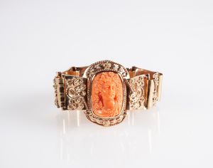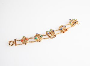 Lunghezza cm. 19,50 Oro giallo 750/000. Smalti, diamanti lapislazzuli,corallo, turchese,crisoprasio. Peso complessivo [..]
