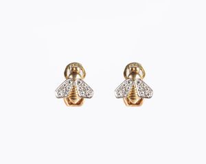 Cm 2,8 Oro giallo e bianco 750/000. Diamanti in taglio rotondo. Peso complessivo gr. 4,5.