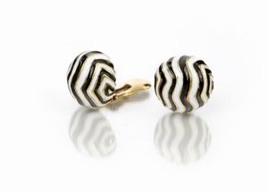 Diametro mm 15 Oro giallo 750/000, smalti bicolore. Peso complessivo gr.16,3