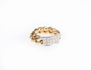 Misura 14 Oro giallo 750/000; diamanti ct. 0,30 .Peso complessivo gr. 12,80.