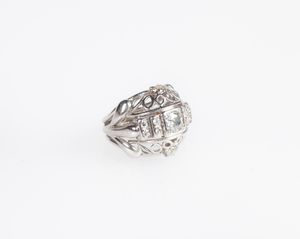 Misura 13 Anello in oro bianco 750/000, diamante in taglio vecchia Europa, ct. 5,50 L/M,P. Peso complessivo gr. [..]