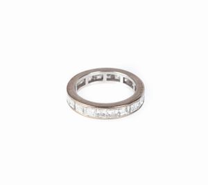 Misura 14 Oro bianco 750/000; diamanti taglio gradini ct. 2 ca. GH VS. Peso complessivo gr. 4,70