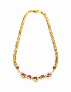 cm 44 Oro giallo 7520/000. Amestiste, peridoti, tormaline, rubelliti, topazi, granati, ioliti. Peso complessivo [..]