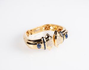 Vestibilità cm 17 Oro giallo 750/000. Zaffiri taglio cabochon e carrè ct 4 ca , diamanti taglio rotondo brillante [..]