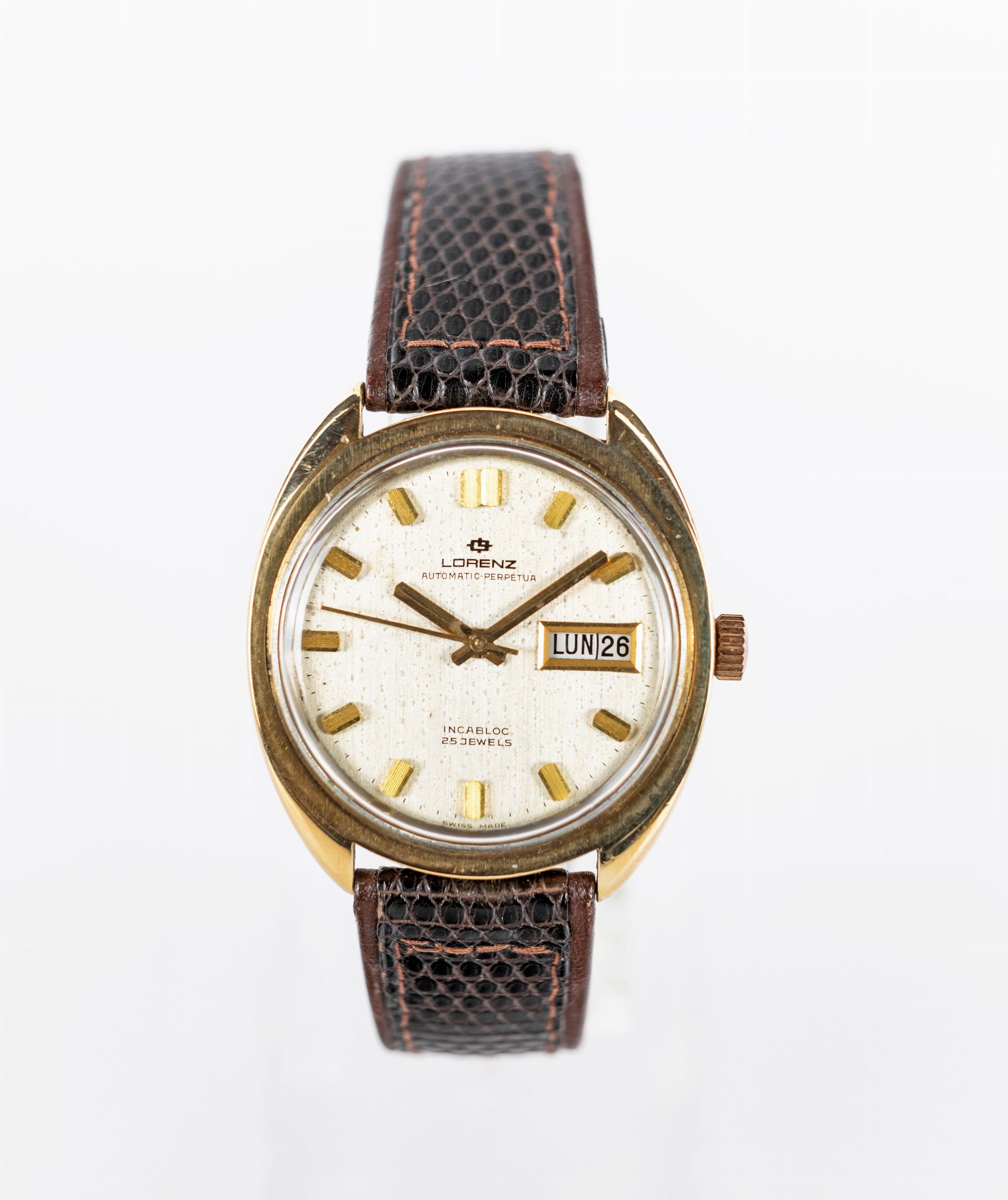 Cassa in oro 750/000. Movimento automatico, datario completo al 3.