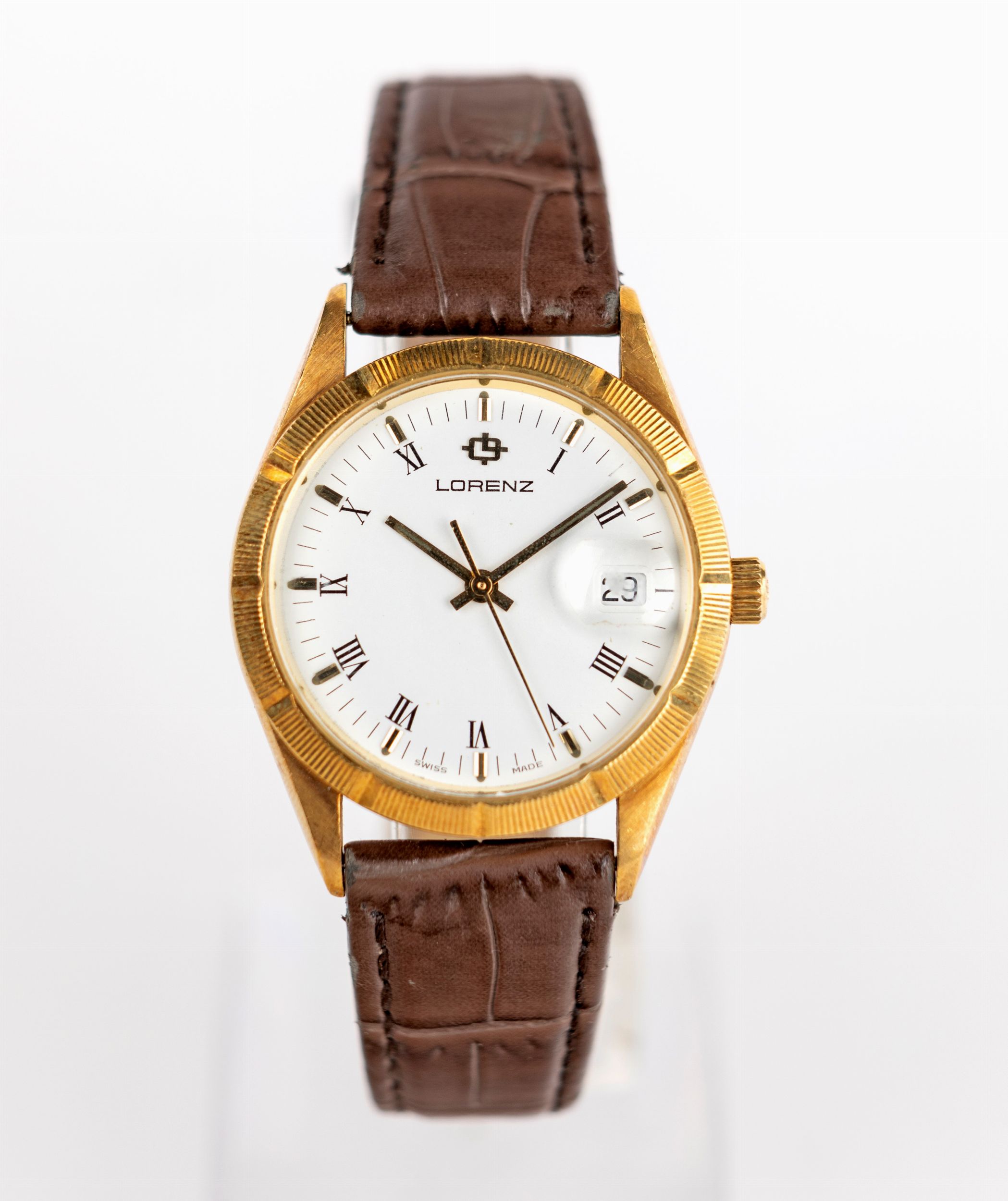 Orologio da polso Lorenz, con cassa in oro giallo 18kt. movimento al quarzo con calendario