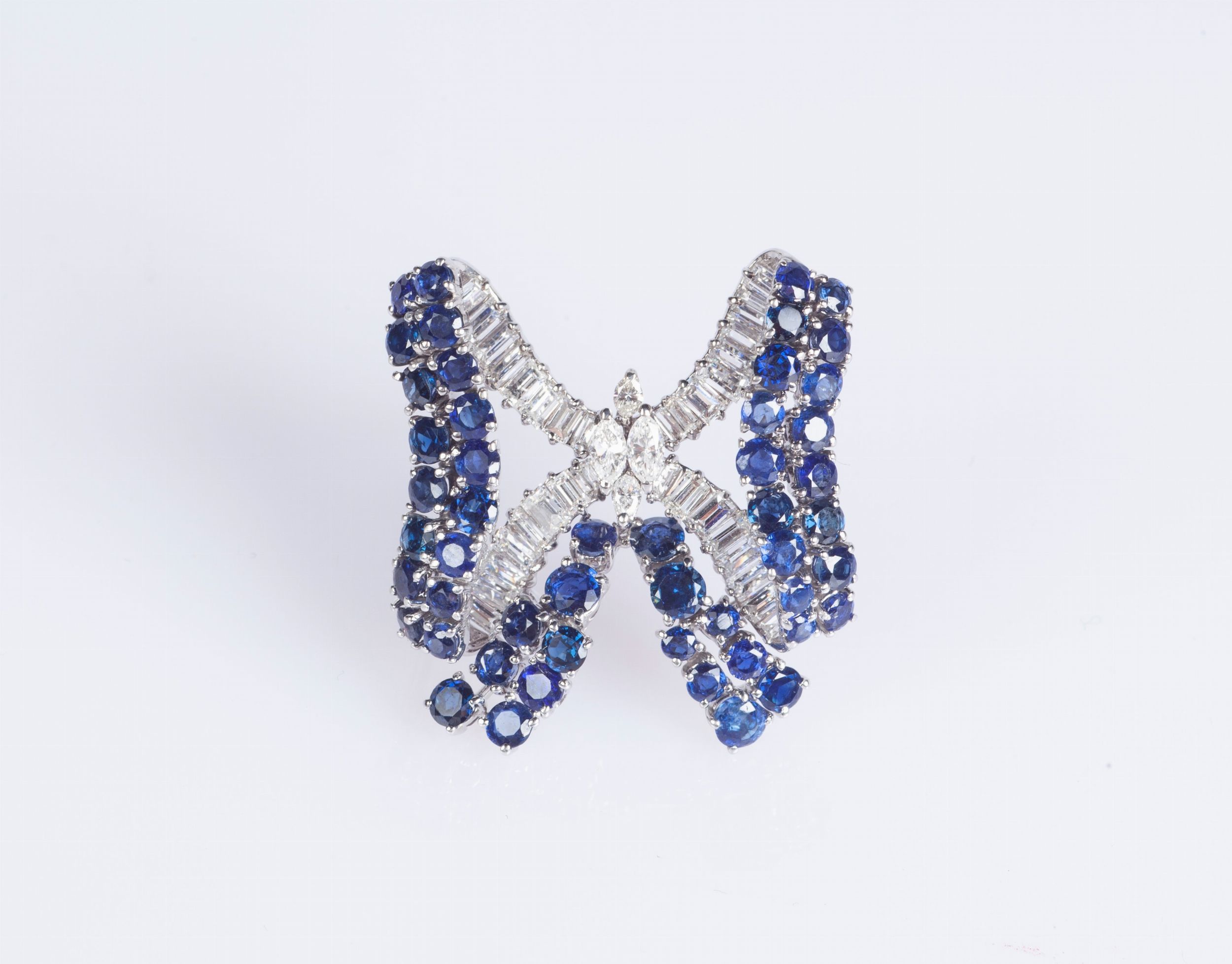 Missiaglia spilla in oro bianco diamanti e zaffiri
