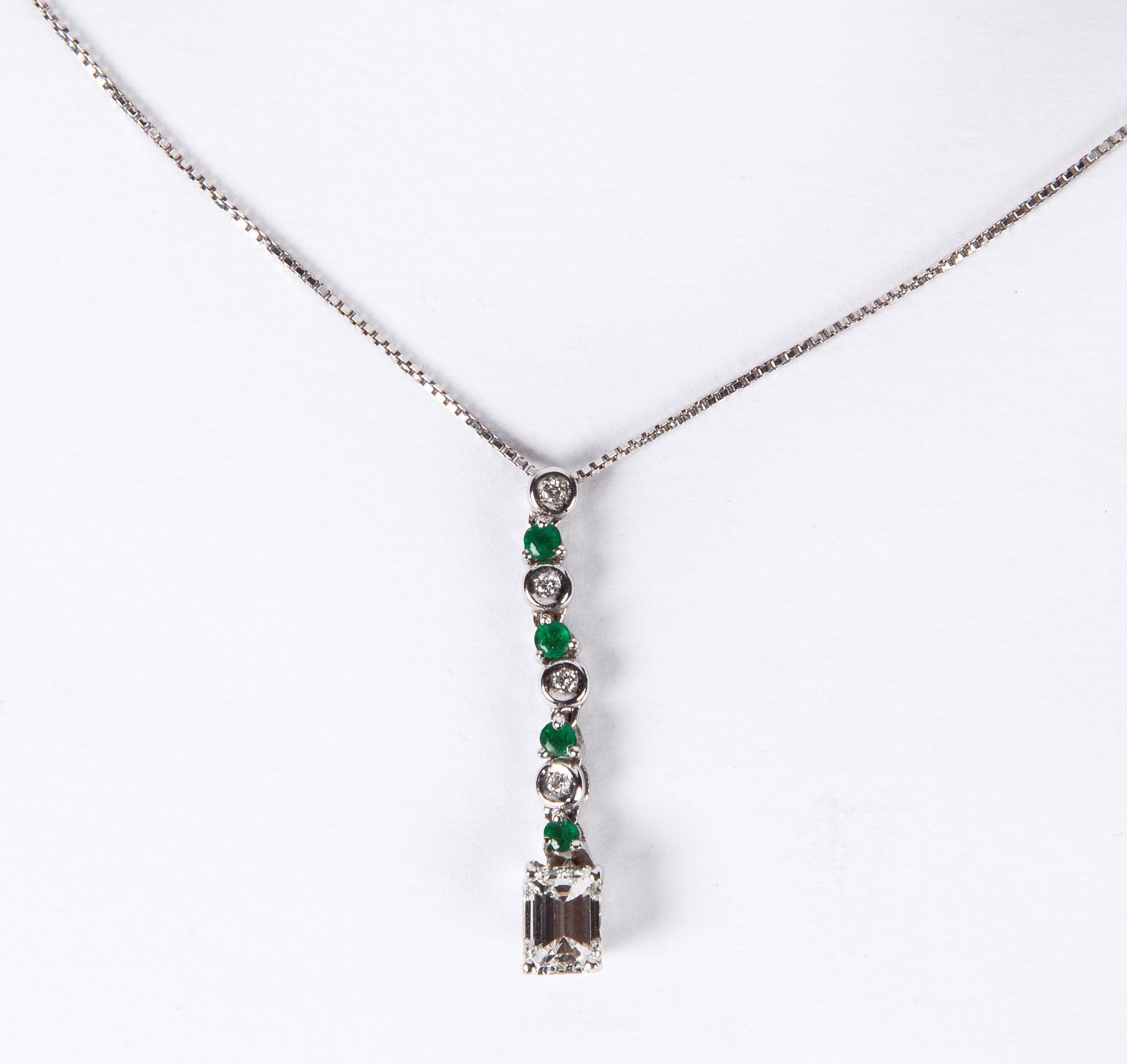 Pendente con diamante e smeraldi