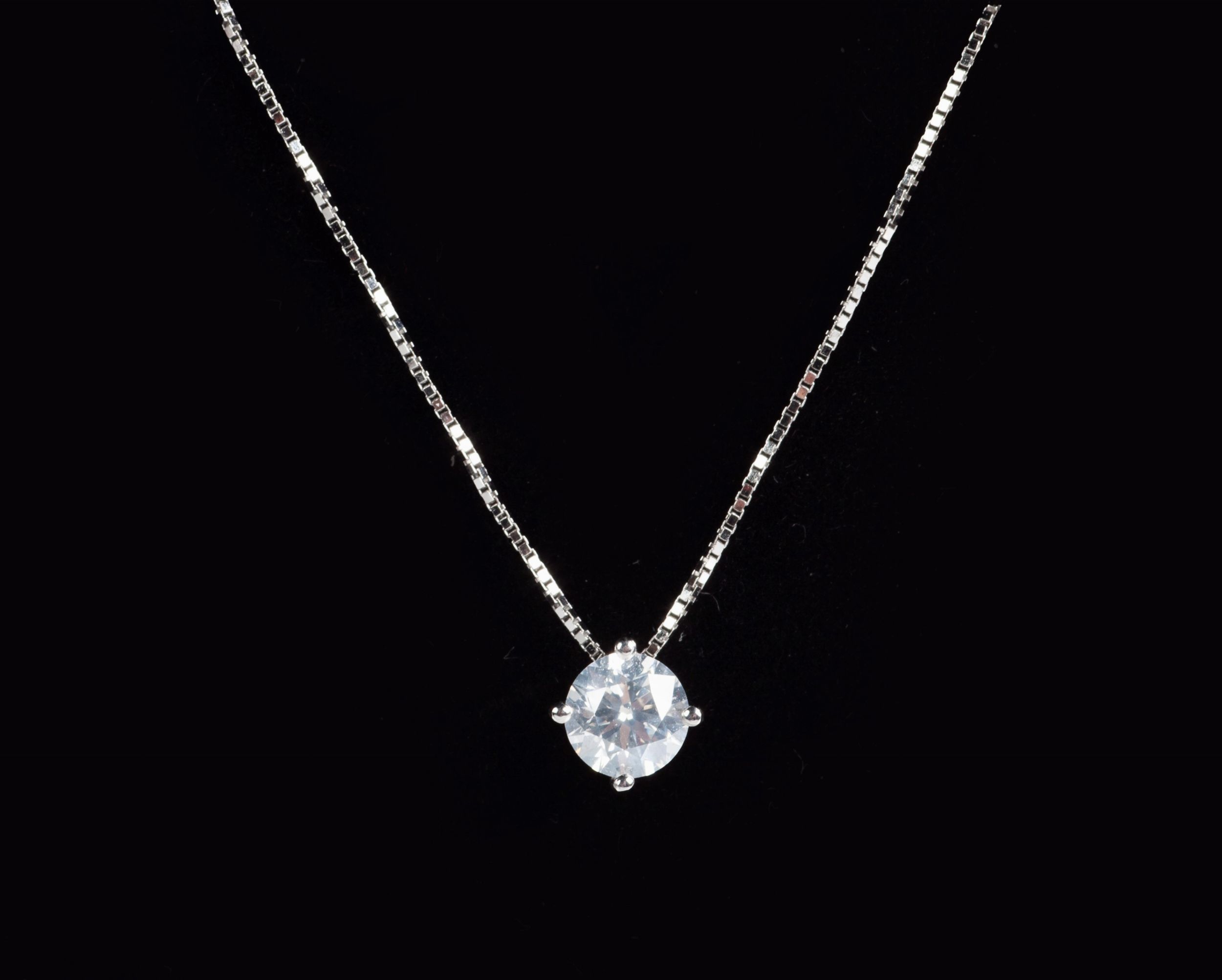 Oro bianco 750/000. Diamante naturale in taglio rotondo brillante ct. 0,51 E - VS1. Corredato di certificazione gemmologica. Peso complessivo gr. 1,40