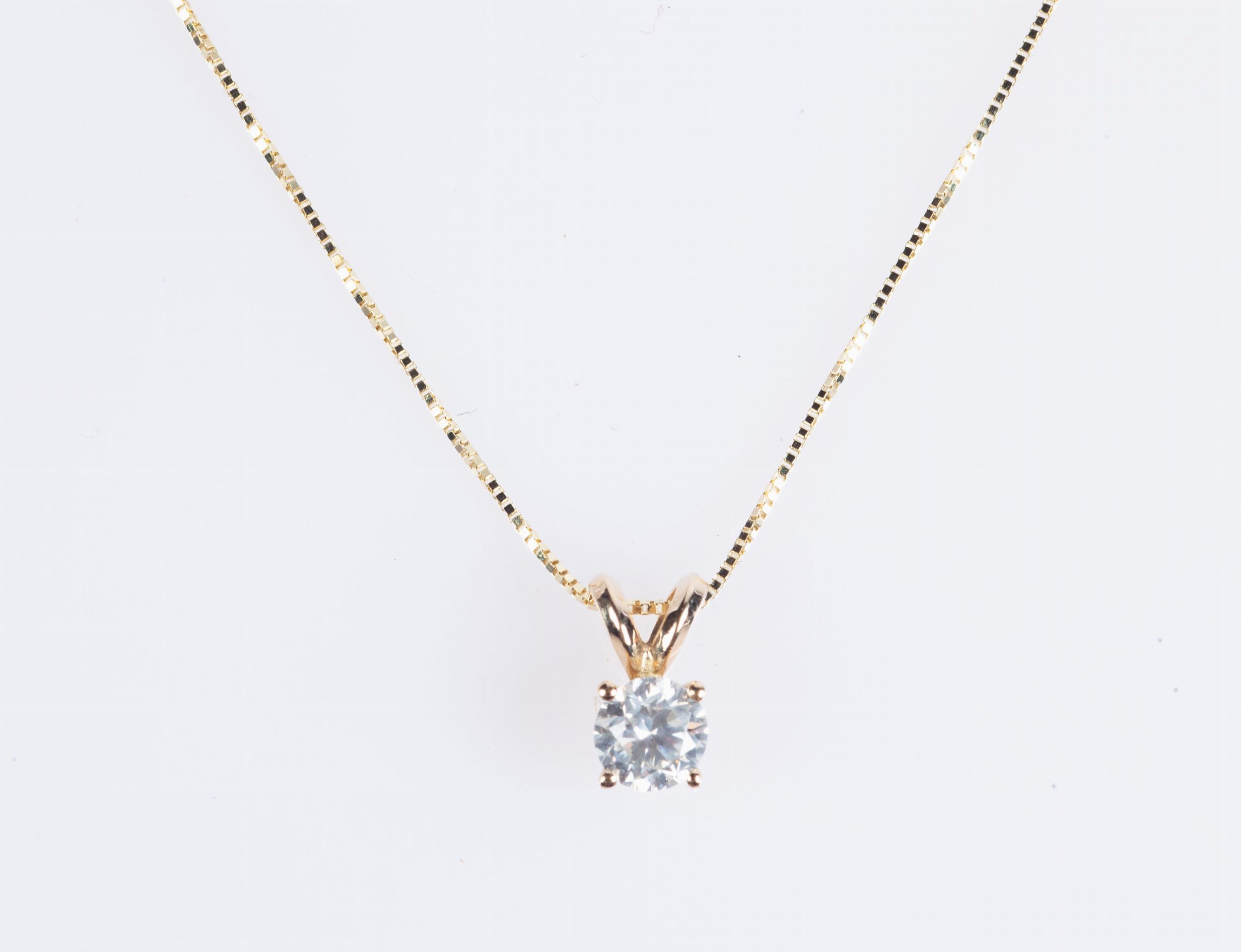 Oro giallo 585/000. Diamante centrale in taglio rotondo brillante, ct. 0,56 , G- SI1. Peso complessivo gr. 1,50.