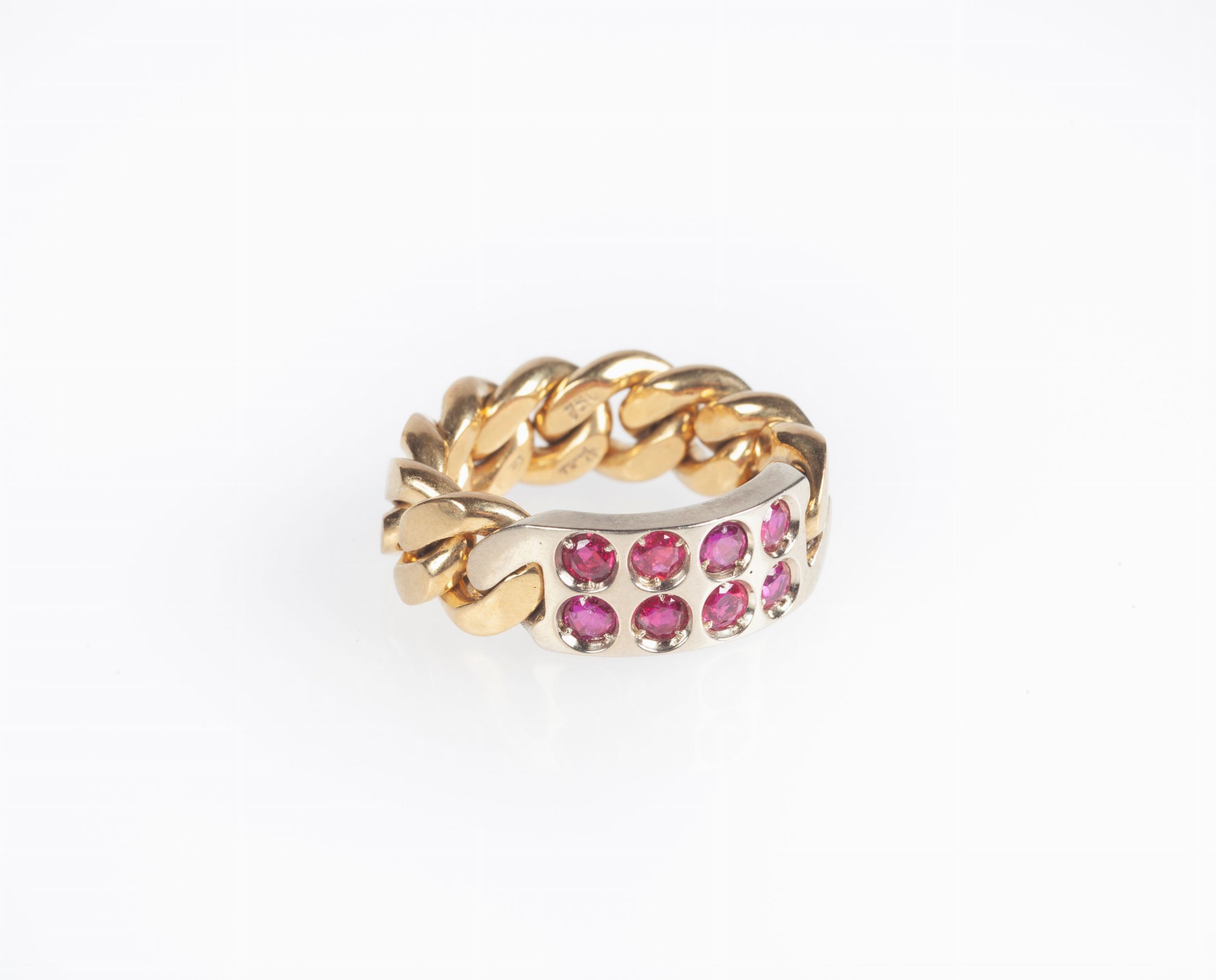 Oro giallo 750/000. Rubini taglio rotondo. Peso complessivo gr. 13,90