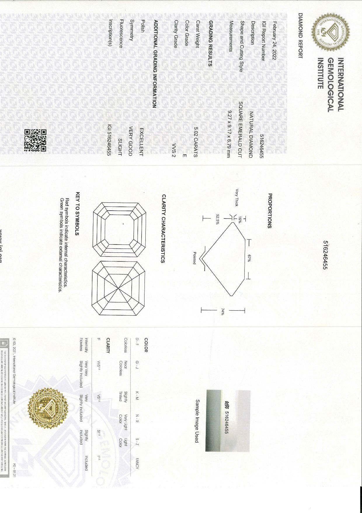 Raro diamante taglio Asscher ct. 5,02
