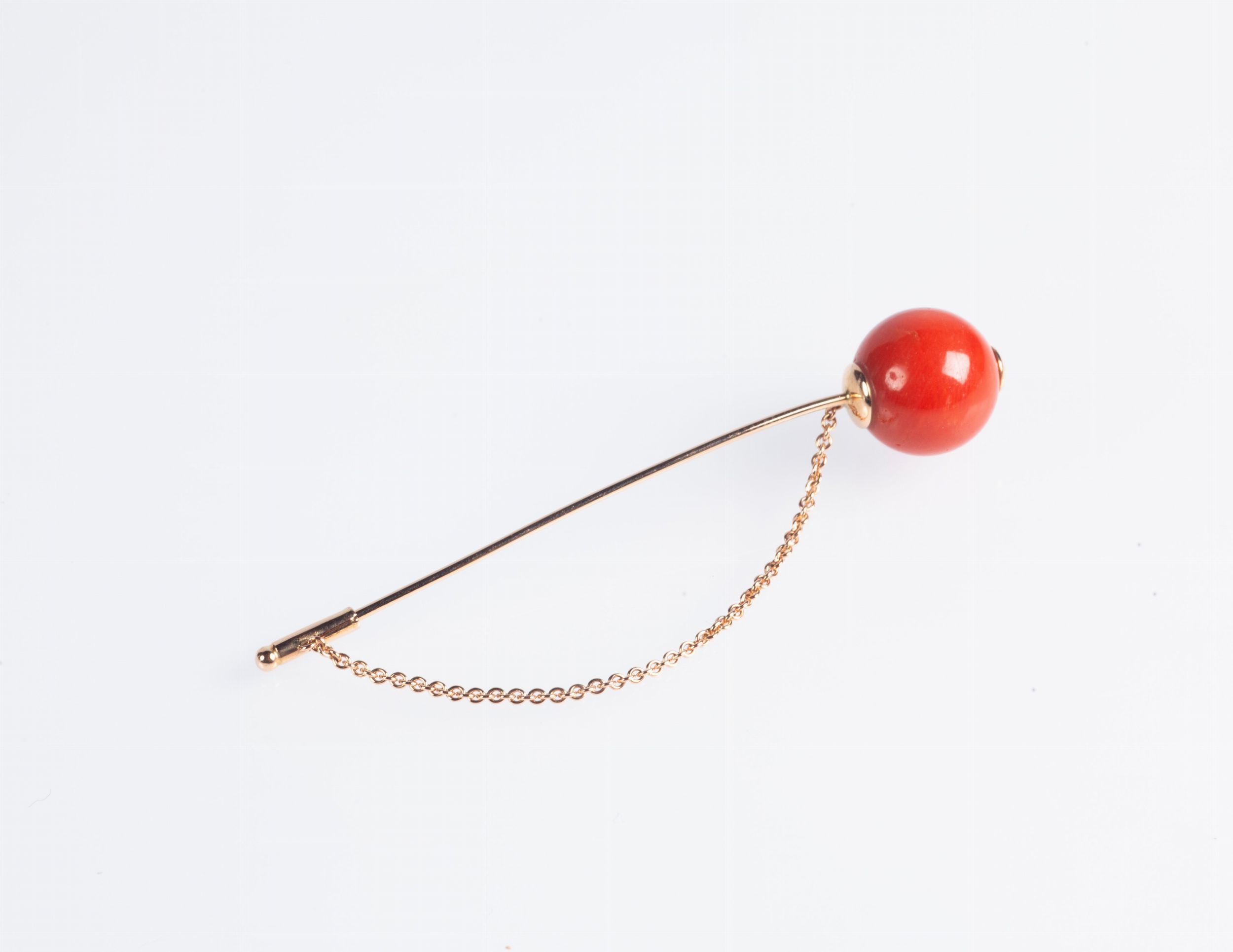 Oro giallo 750/000. Sfera in corallo rosso mm.13. Peso complessivo gr. 6