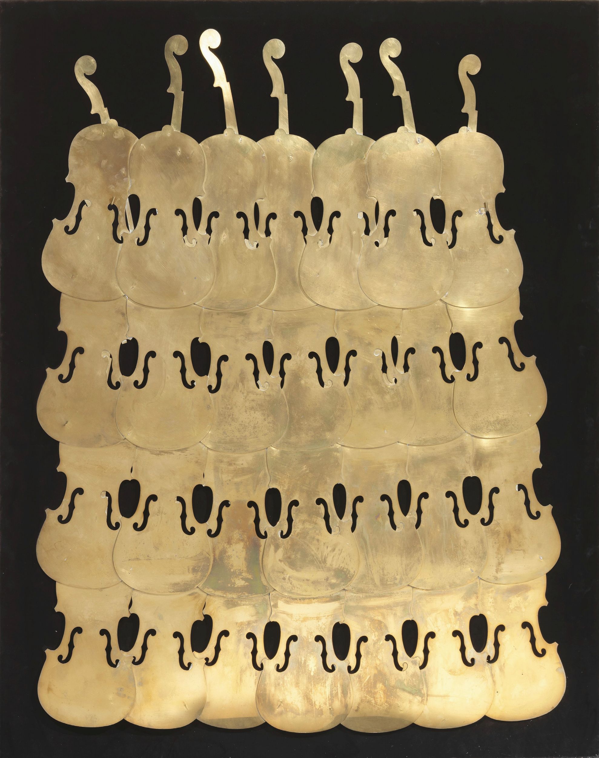 Bronzo su velluto teso su tavola, multiplo, cm. 151x127