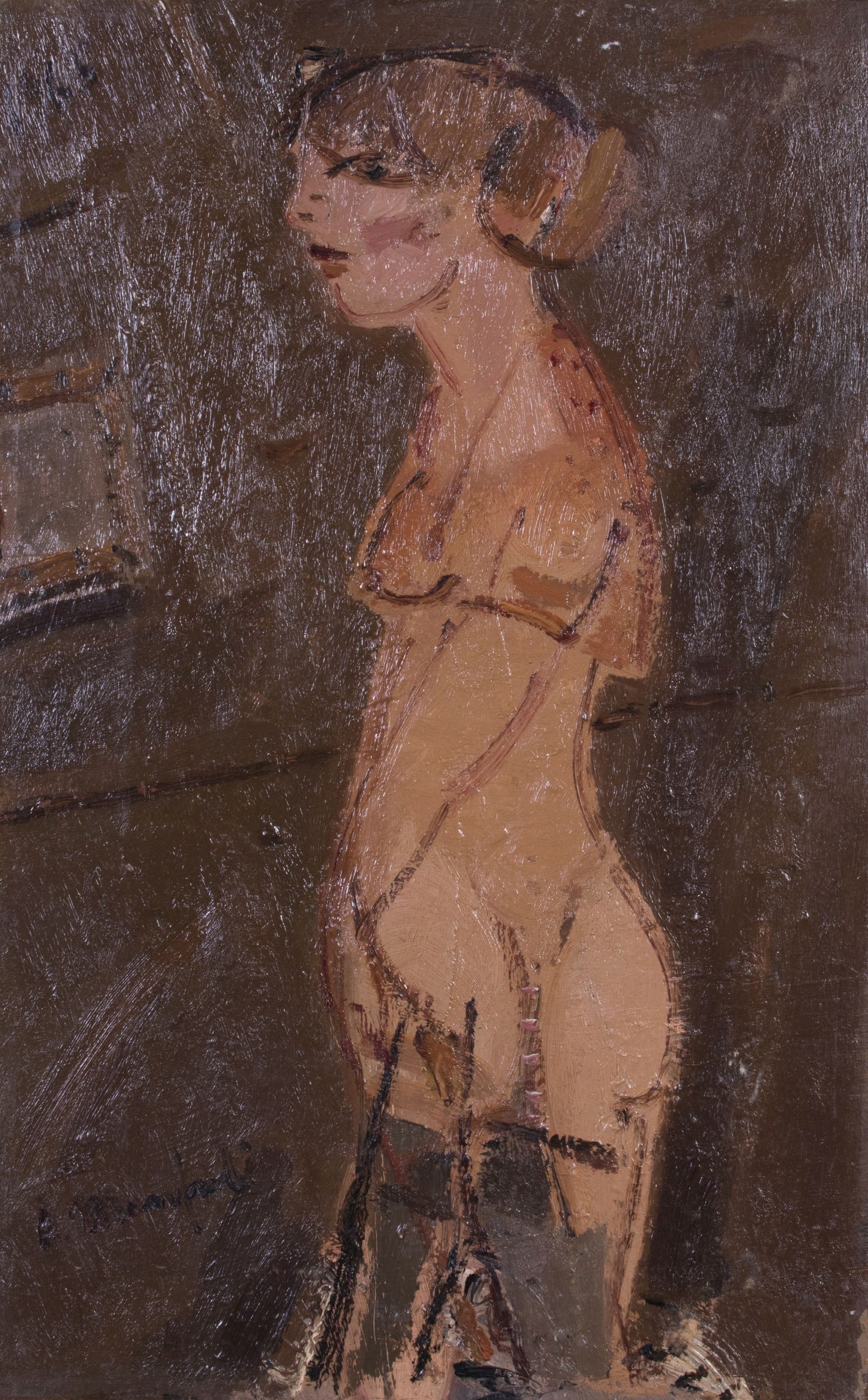 Al verso sulla tela: etichetta Galleria d'Arte Mentana, Firenze (con titolo L'idiota).