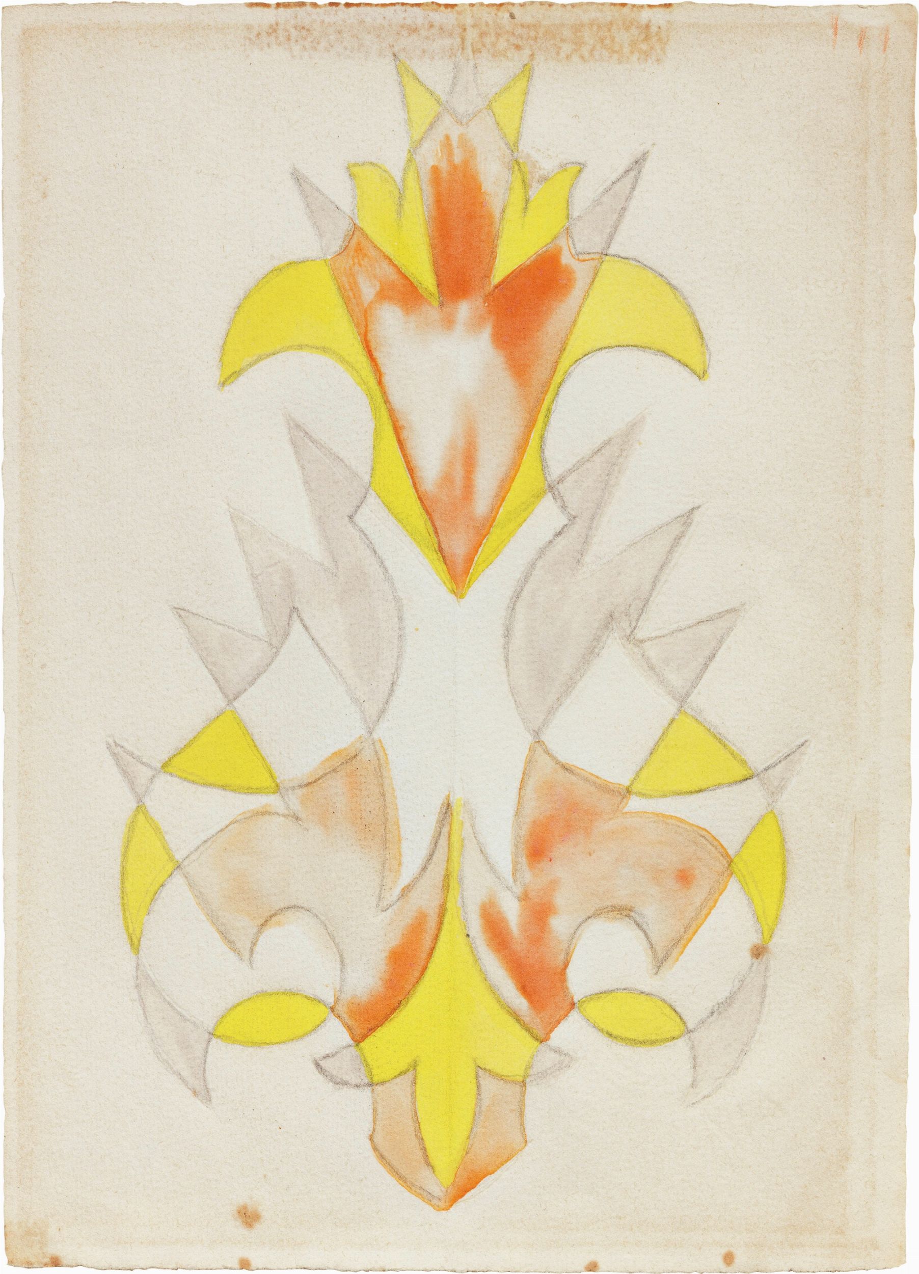 Giacomo Balla : Fiore futurista - progetto arancio, giallo e lilla  - Asta Dipinti, Disegni, Sculture e Grafica - Associazione Nazionale - Case d'Asta italiane