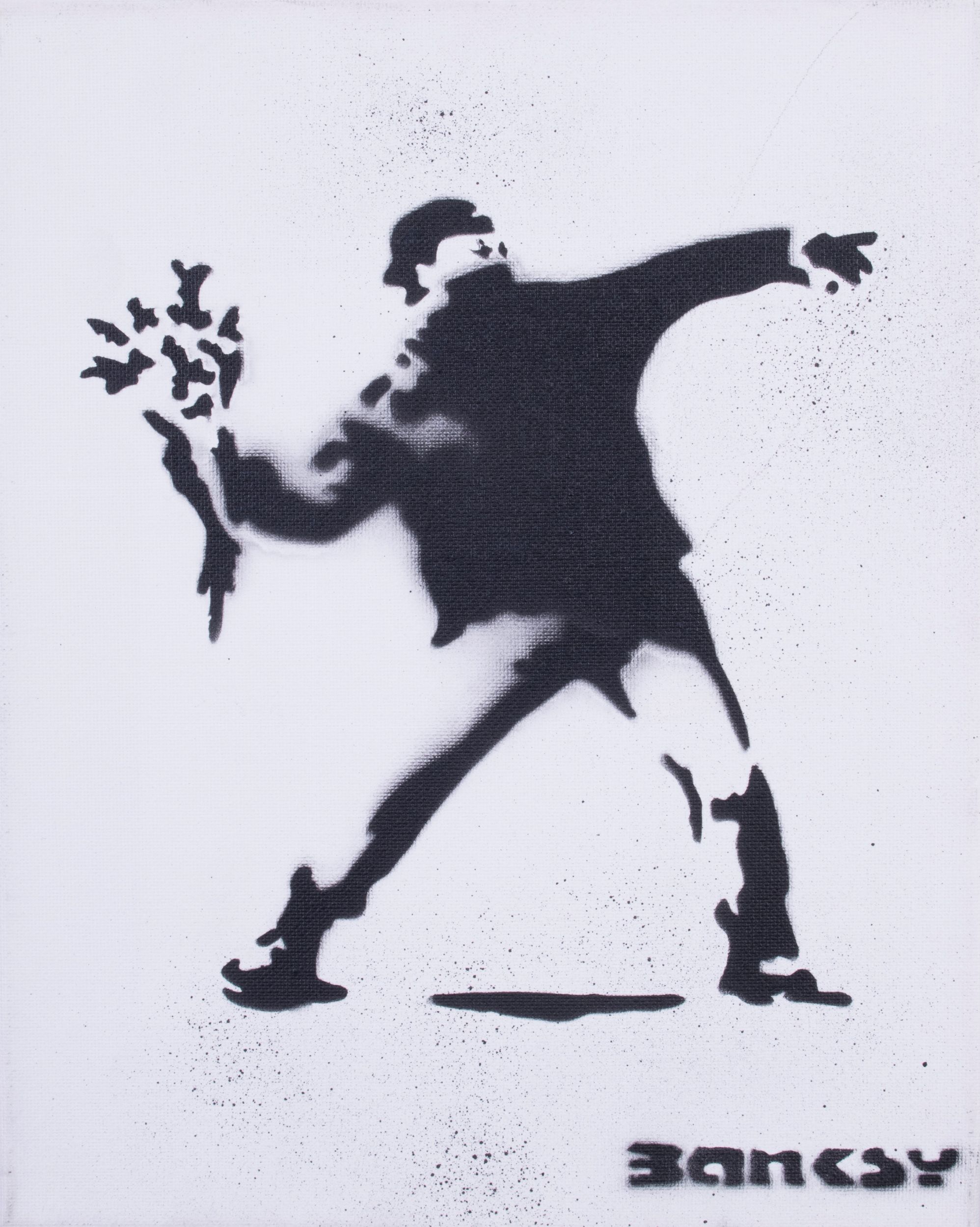 2015 Firma a stencil in basso a destra: Banksy; scritta e firma al verso sul risvolto della tela: Enjoy your free art / Banksy is Dismal!; sulla tela: cartiglio Dismaland con tiratura 2/30.