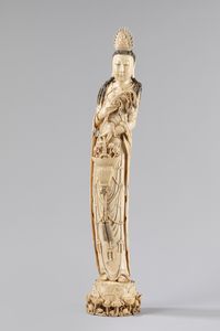 Grande scultura in avorio raffigurante Guaniyn. Cina, sec. XIX