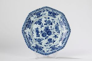 Piatto in porcellana bianca e blu. Cina, secolo XVIII