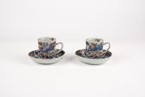 Coppia di tazzine con piattini in porcellana Imari. Cina, secolo XVIII