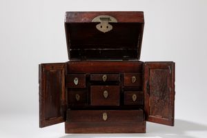 Piccolo stipo da viaggio in legno duro rosso. Cina, inizi secolo XX