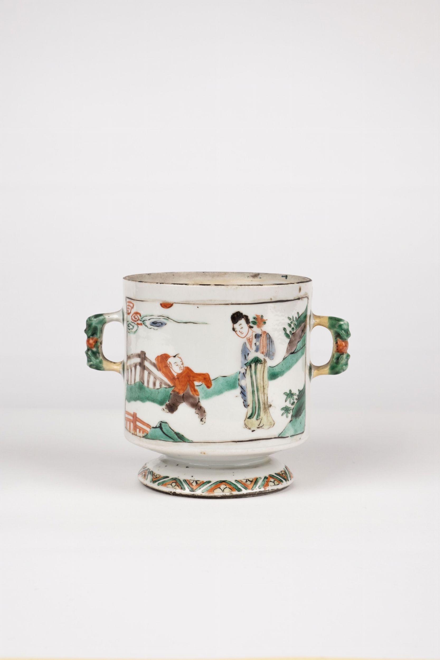 Coppa biansata in porcellana Famiglia Verde. Cina, periodo Kangxi (1661-1722)
