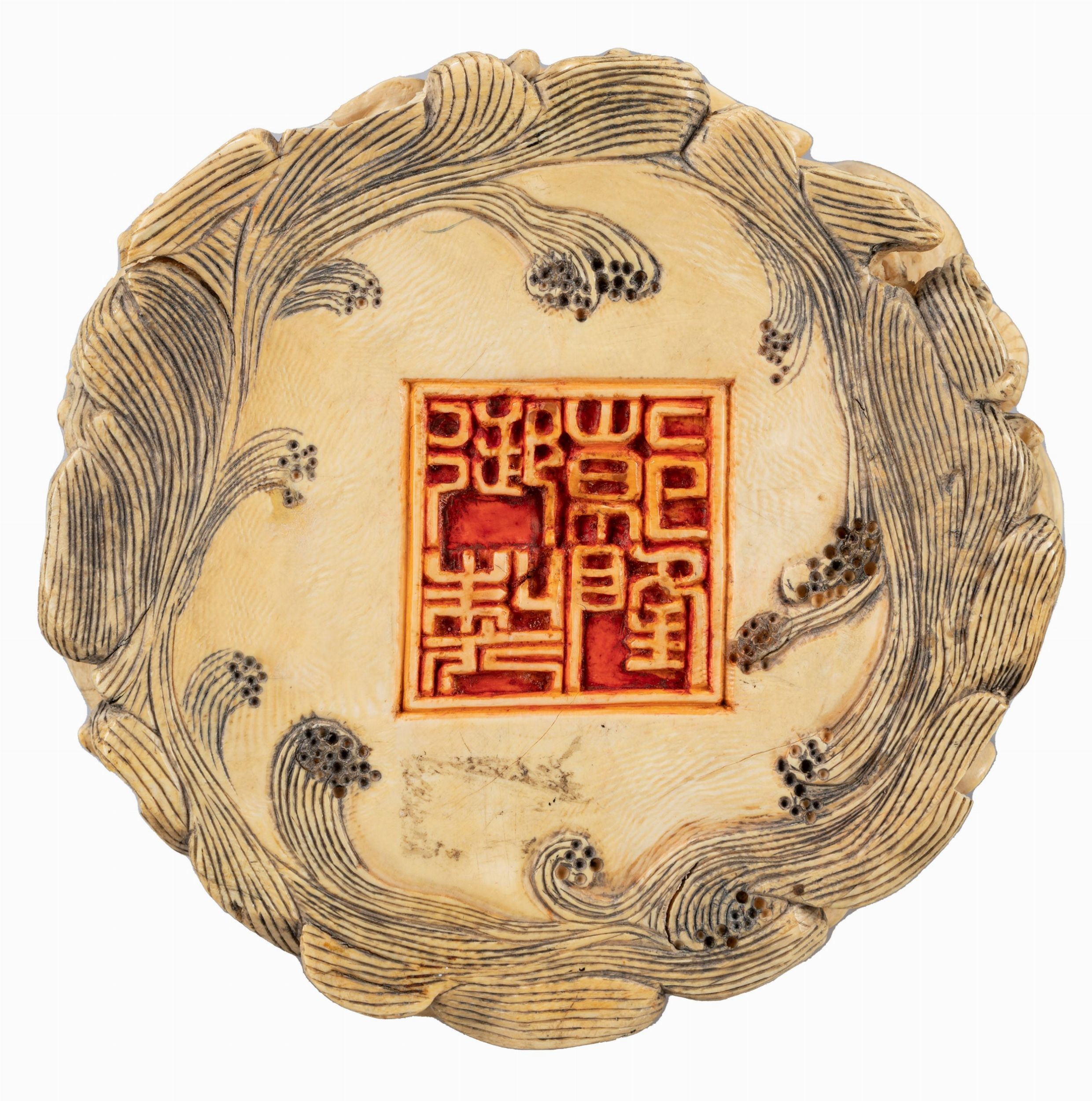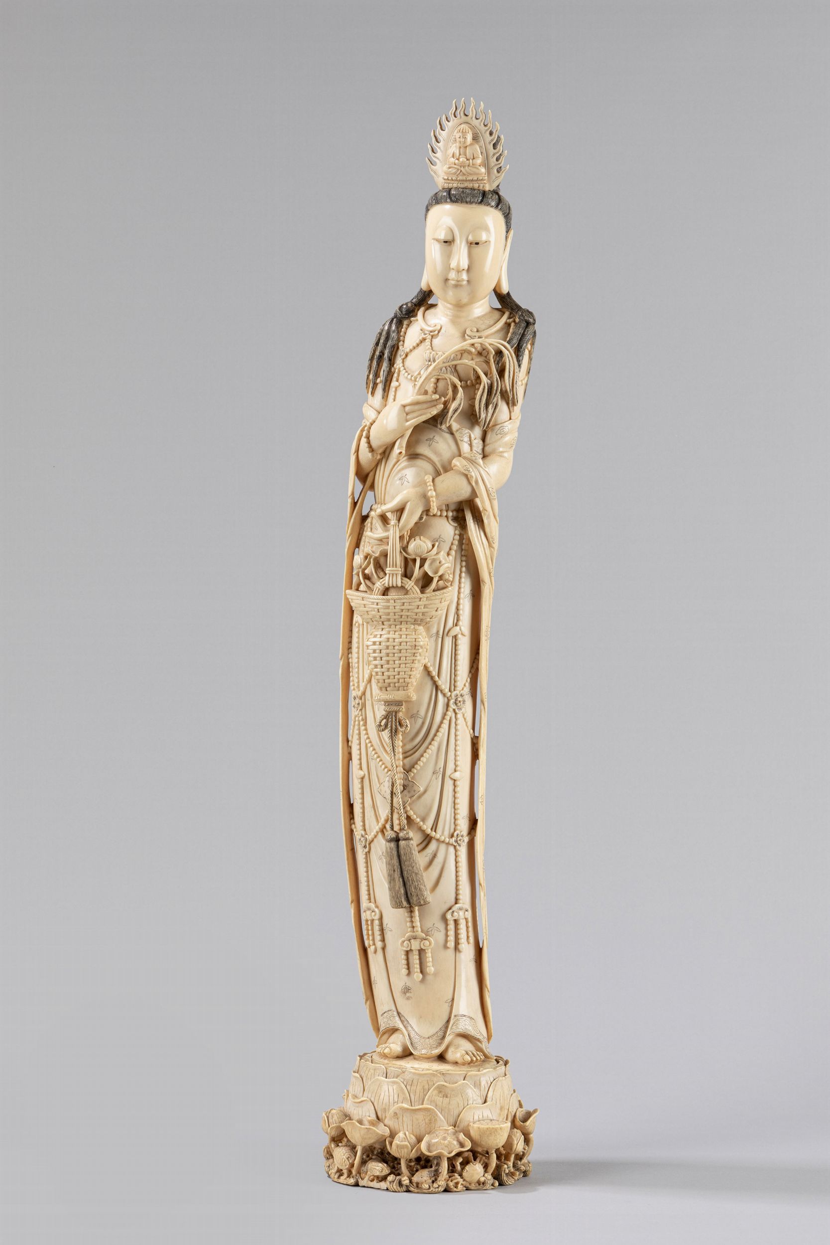 poggiante su base a fiore di loto, recante marchi Qianlong