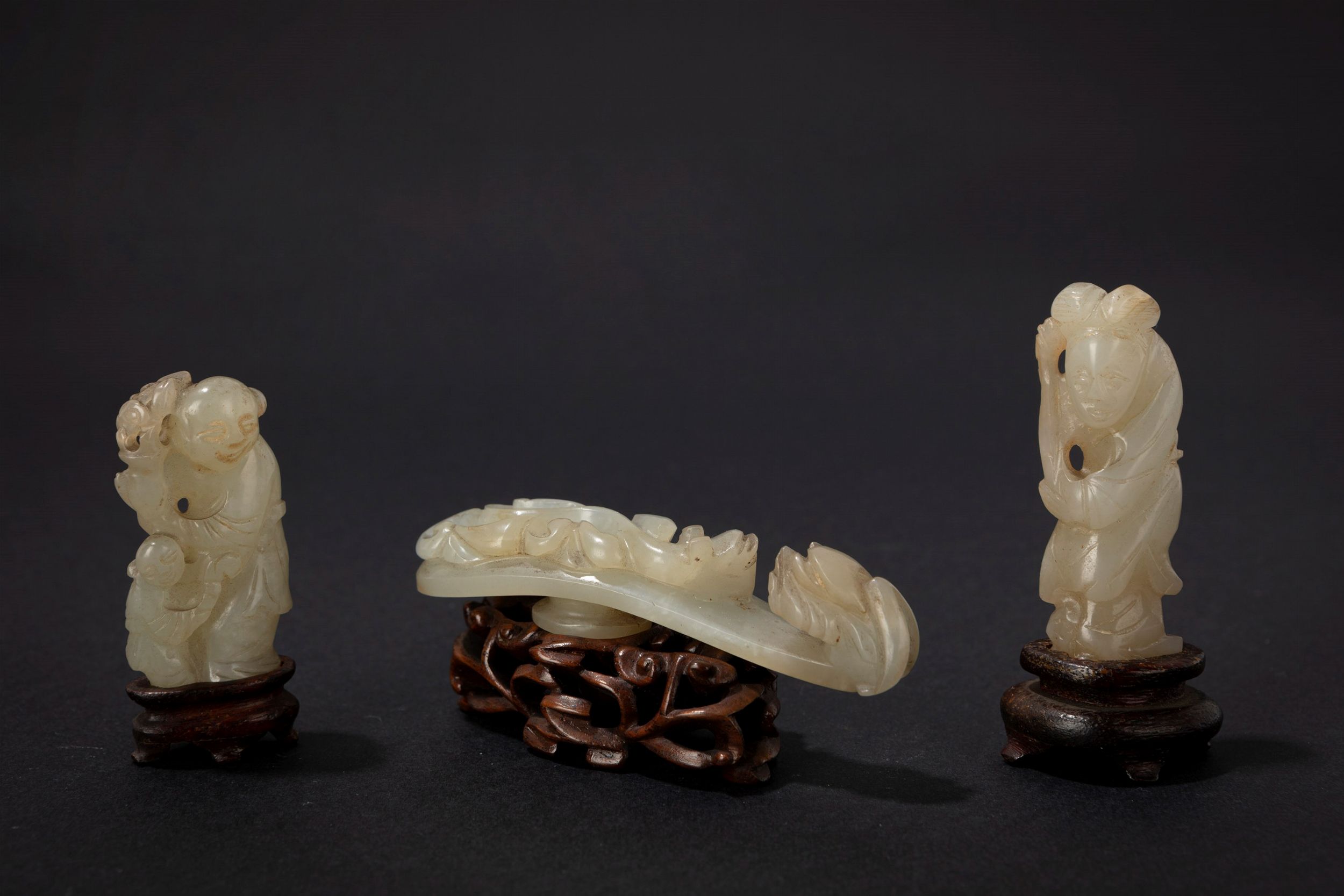Lotto composto da due sculturine e una fibbia in giada. Cina, secolo XIX