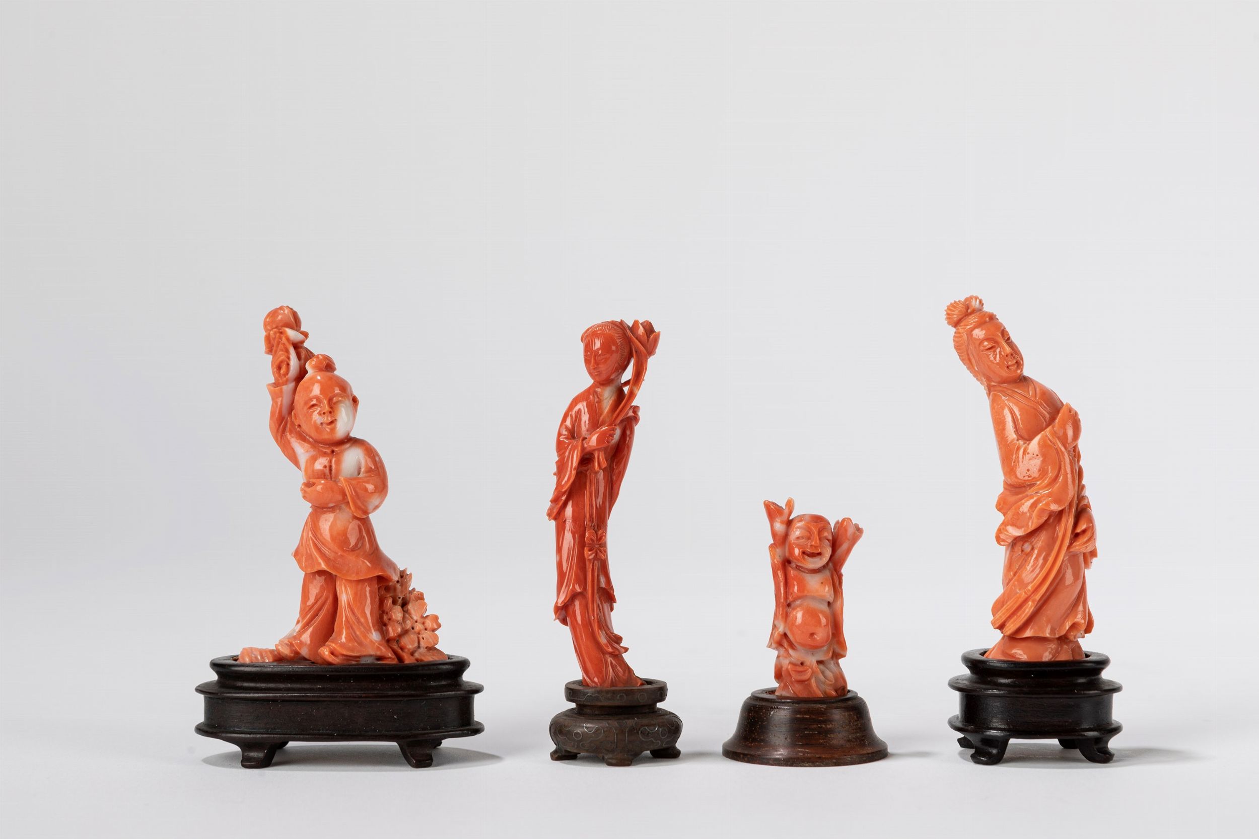 Lotto composto da quattro sculturine in corallo. Cina, inizi secolo XX