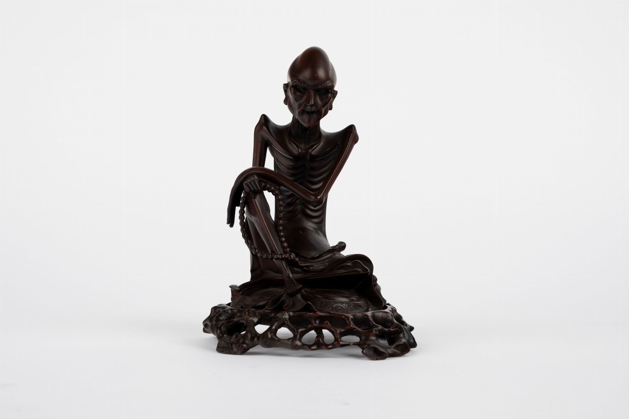 Scultura in legno di bosso raffigurante buddha ascetico. Cina, secolo XIX