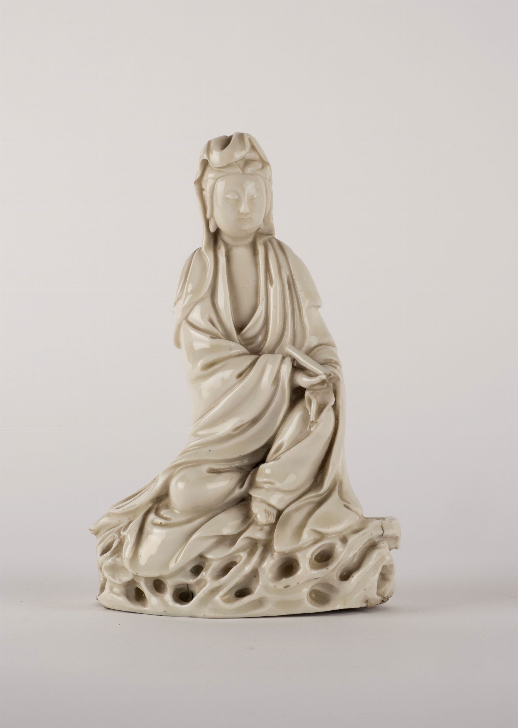 Scultura in porcella bianca raffigurante Guanyin. Cina, secolo XVII