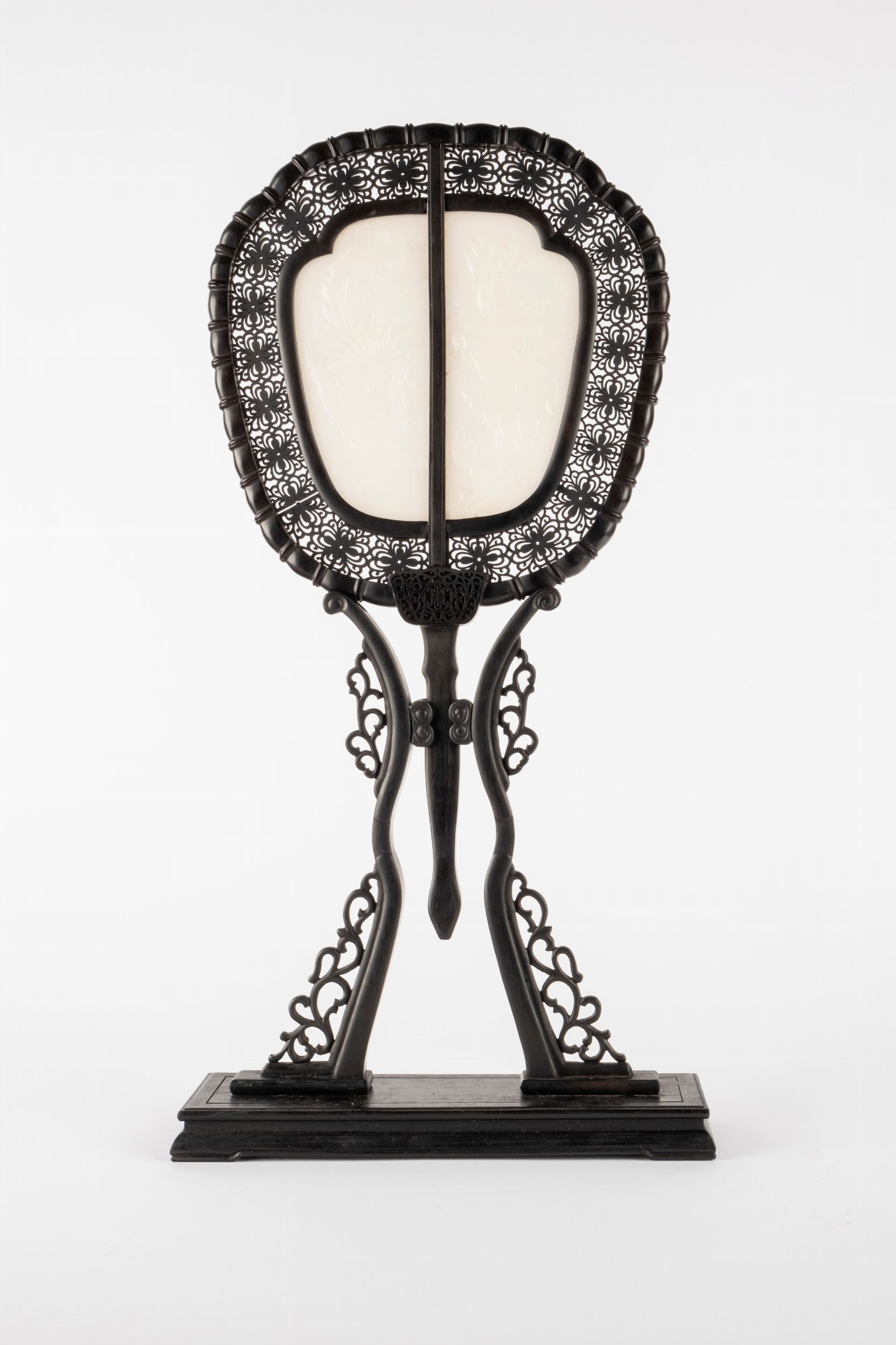 Ventaglio con supporto da tavolo centrato da giada. Cina, Periodo della Repubblica [..]